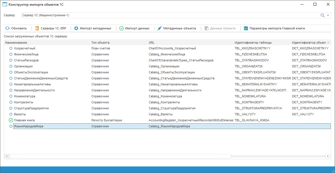импорт объектов 1С: проводок Главной книги и их субконто;