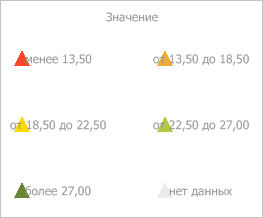 До выполнения примера легенда с интервалами у пузырькового дерева выглядит так, как показано на странице описания интерфейса IVZDataScale. Установим для данной легенды маркер треугольной формы, горизонтальные и вертикальные отступы, равные 50 пикселям, а также выравнивание их подписей по центру с отступом в -20 пикселей. Сами элементы расположим в два столбца: