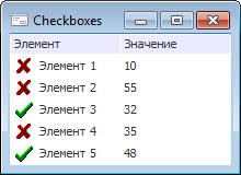 Если свойству установлено значение True, то рядом с элементами компонента будут располагаться флажки. По умолчанию свойству установлено значение False, при этом флажки не отображаются.