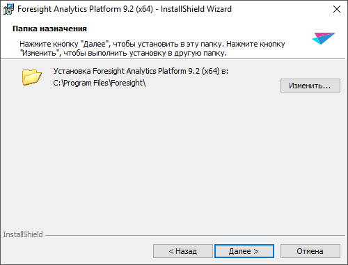 Выбор папки для установки «Форсайт. Аналитическая платформа»