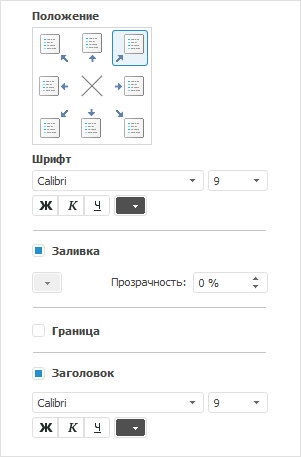 Примечание. В регламентном отчете легенда добавляется при помощи кнопки с раскрывающимся меню  «Легенда» группы «Диаграммы» вкладки «Вставка» ленты инструментов. Настройка легенды доступна на вкладке боковой панели «Параметры легенды» после выделения легенды на рабочей области.
