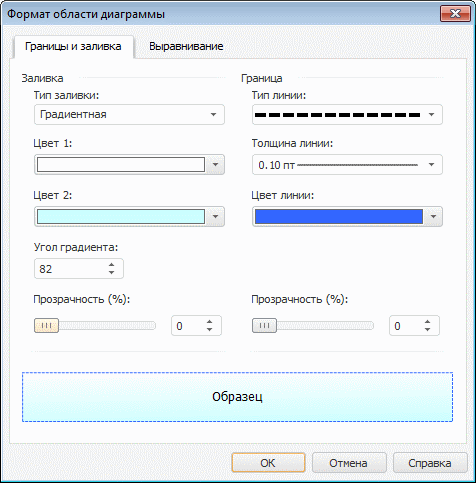 На вкладке доступны настройки границ и заливки области диаграммы.