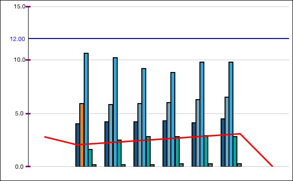 В данном примере реализовано изменение цвета точки ряда диаграммы, изменение размера, цвета, толщины и выравнивая маркеров оси диаграммы. Также реализовано скрытие оси X и установка смещения оси значений.