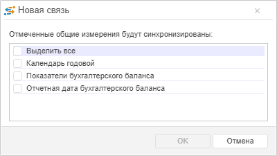 Примечание. Связь может быть создана, только если синхронизируемое измерение имеет атрибут с назначением «Идентификатор».