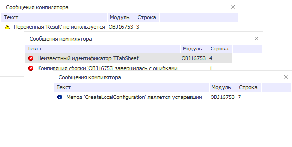 Окна среды разработки | Общие сведения о сообщениях компилятора