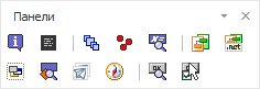 Панель инструментов «Панели» предназначена для навигации по окнам среды разработки и содержит следующие команды: