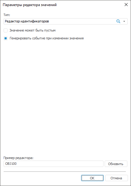 Если редактор значений используется для задания значений параметров объектов, то учитывайте следующие особенности: