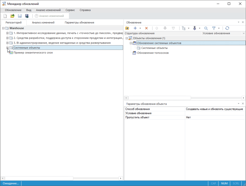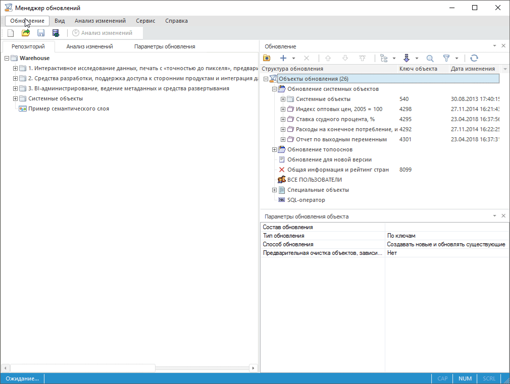 Примечание. Обновление версий объектов рекомендуется производить только для клонированных репозиториев.