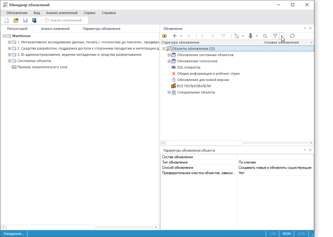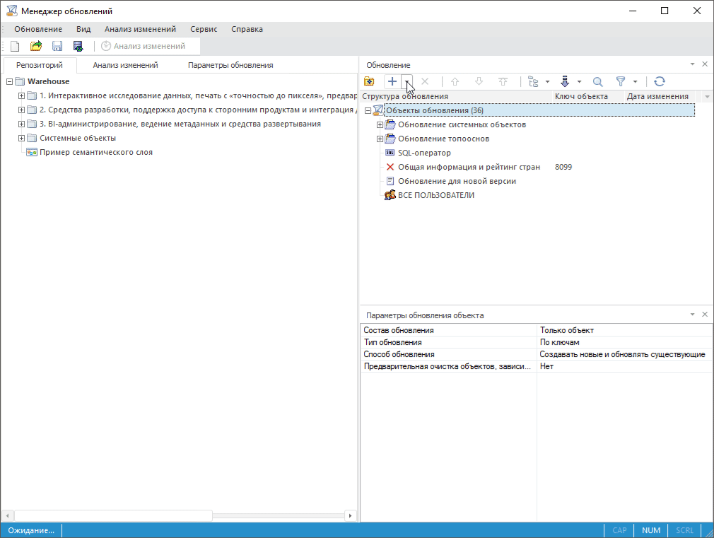 1. Проведите анализ изменений объектов репозитория и добавьте в обновление при необходимости.