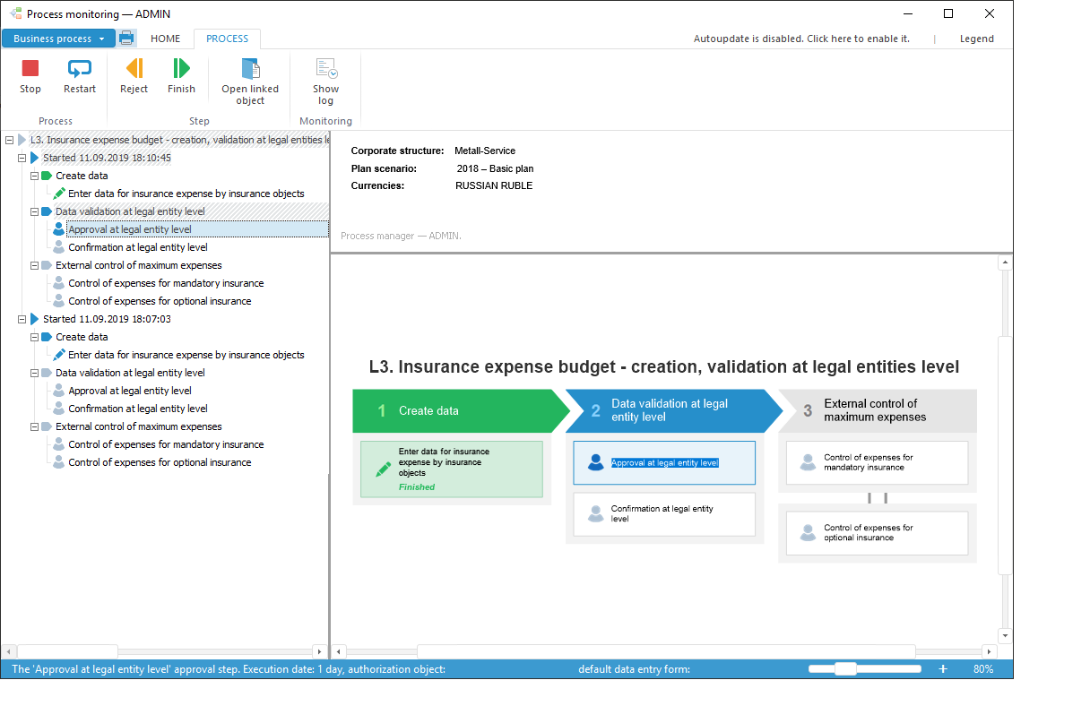 The Business Process Management extension is used for visual modeling of business processes, their execution and monitoring.