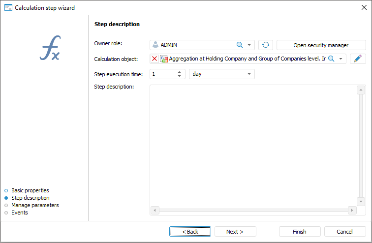 Calculation Object. The box is mandatory. Select a calculation algorithm in the drop-down list using search. The list contains repository objects tree where calculation algorithms and folders containing them are only displayed. To edit the selected calculation algorithm, click the