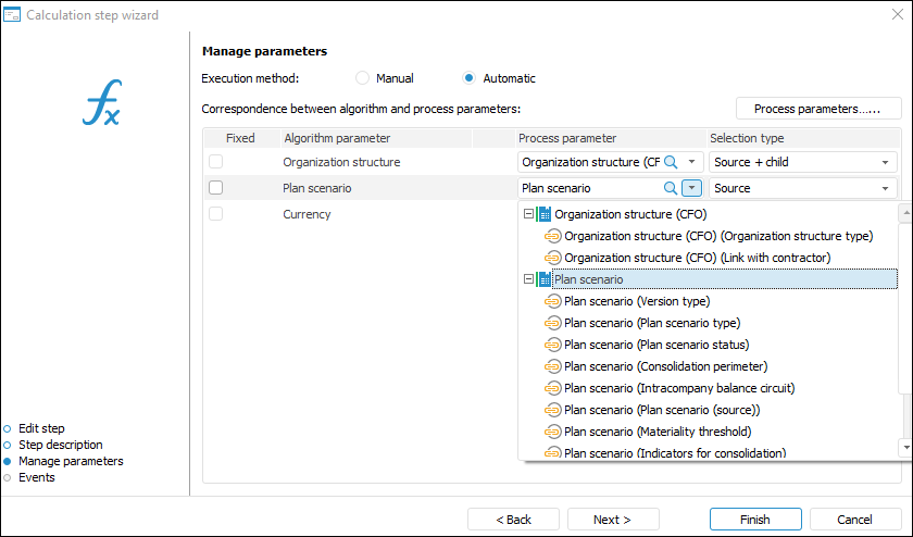 Correspondence Between Algorithm and Process Parameters. It is required to set correspondence between calculation algorithm and process parameters to start calculation algorithm with the same parameters as the process step. To do this, specify:
