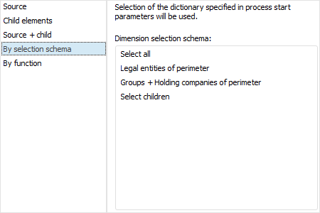 By Selection Schema. Previously created selection schema of dictionary elements is used, for example, for the Organization. Structure dictionary: