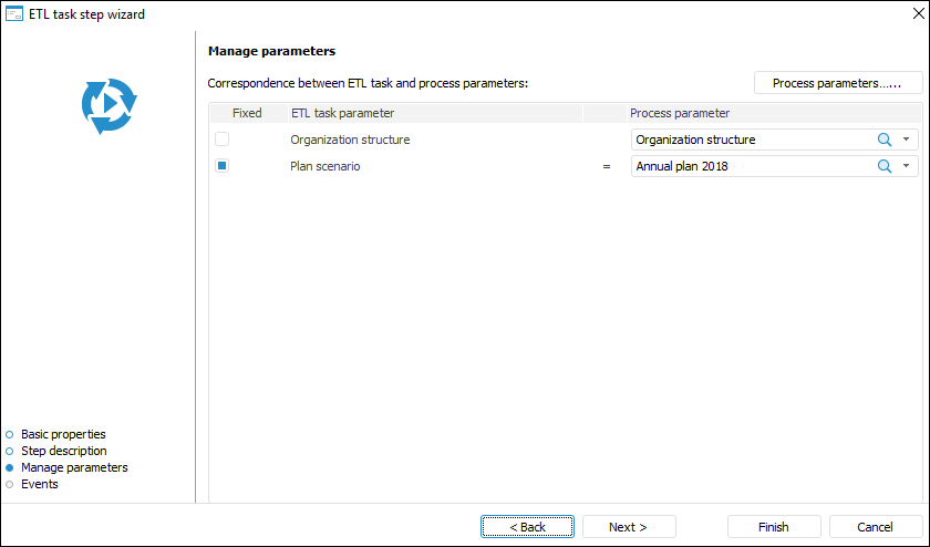 ETL Task Parameter. The list contains parameters of the ETL task. It is filled in automatically.