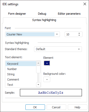 This tab is used to determine display parameters for particular code parts in the macro window.