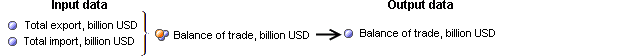 Then the sequential modelling of balance of trade is described as example. Balance of trade is the difference between export and import, thus the modelling is quite simple: