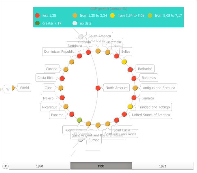 Before executing this example, the bubble tree looks as shown on the IVZBubbleTree interface description page. Set top and right border alignment and use turquoise color fill for bubble tree legend with intervals: