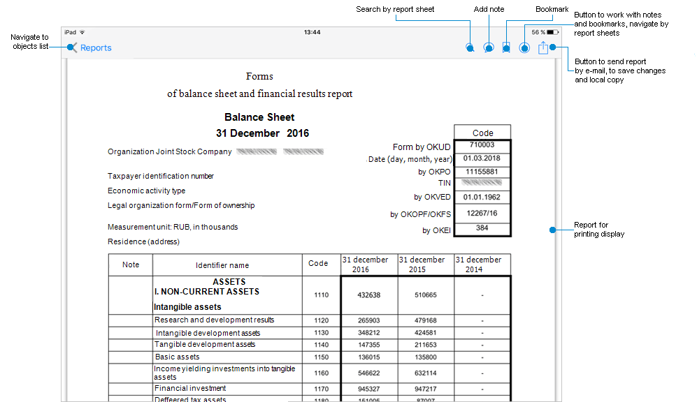 To add notes and bookmarks, search on a report sheet, see the Working with Report for Printing article.