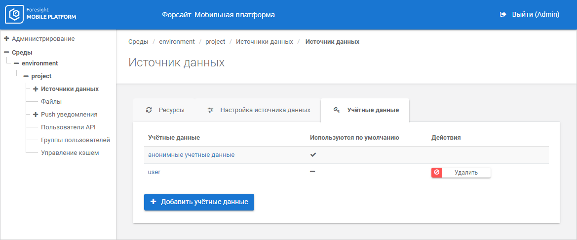 NOTE. Default anonymous credentials are automatically added for JSON, WEB data sources.