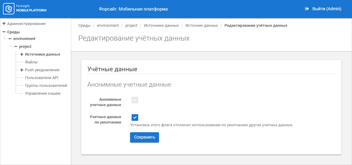 Default Credentials. Select or deselect the checkbox to determine a default account. The users who do not have other data source credentials will use anonymous credentials on API request.