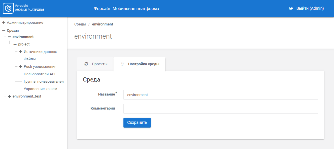 Each environment provides transferring settings inside the server or between platform servers, and unites projects that differentiate access to data sources.