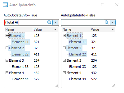 The AutoUpdateInfo property determines whether the information about selection in the component editor is updated automatically.