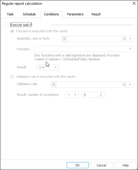NOTE. Setting of schedule, condition and result is optional and can be performed depending on task requirements.