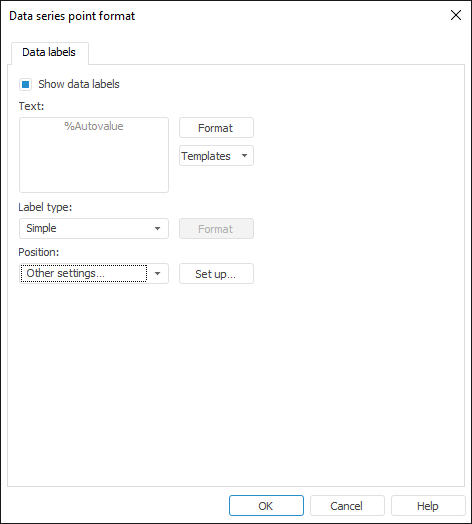 Depending on the chart type, the following settings are available in the Data Series Point Format dialog box: