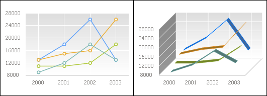 A line chart shows each data element as a point, the vertical coordinate of which is proportional to the element value. If there are several data groups, the points corresponding to one data series are connected with a broken line.