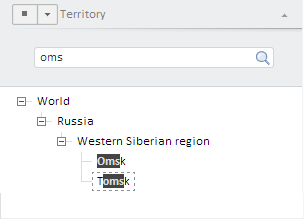 Changing the order and the contents of attributes is performed in the breadcrumb using the Selection group of tabs on the side panel. Each tab corresponds to the data source attribute and contains a search string and a list of attribute values.