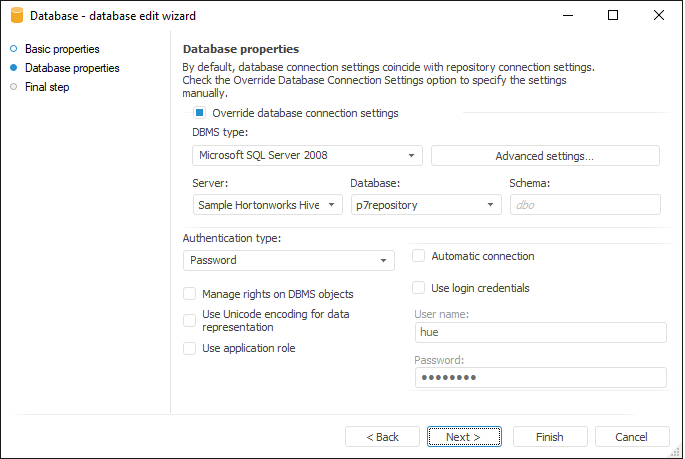 Connection to external databases is used to get access to data that are stored in external sources. The connection to external databases provides a possibility to store actual database settings, to get access to objects form another repository and also to get access to multidimensional databases built on Microsoft Analysis Services, SAP NetWeaver BW and other platforms.