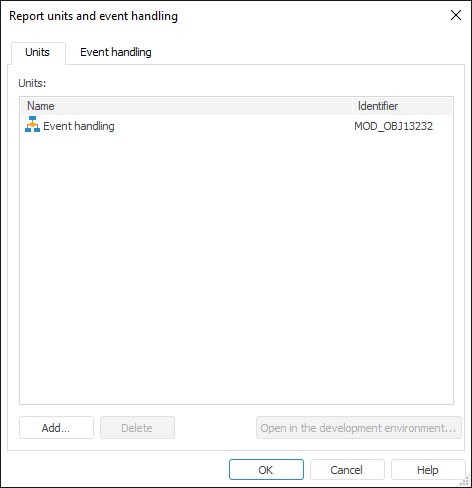 To work with the list of units available for use in the regular report, go to the Units tab in the Report Units and Event Handling dialog box: