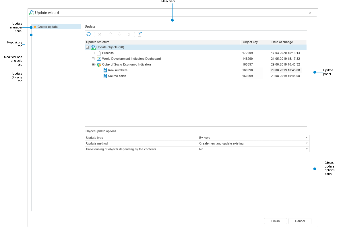 To update objects, log in to the system under credentials of administrator or member of the Administrators group.