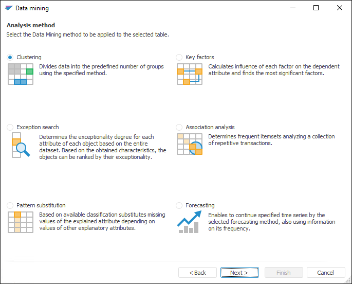 In Foresight Analytics Platform the following methods of data mining are available: