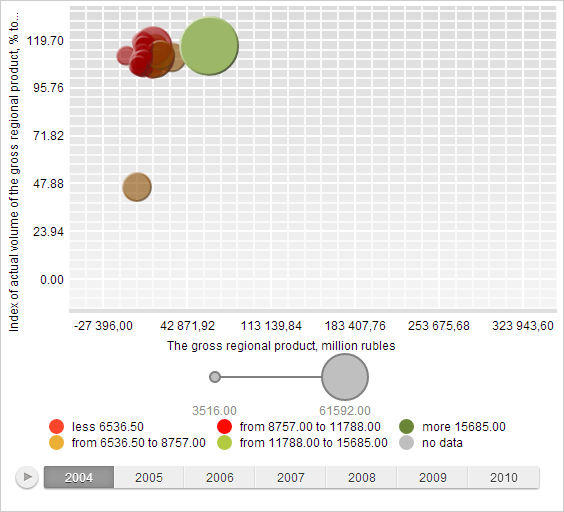 As a result, highlighting of specified bubble chart bubble is set. Appearance of other bubbles also changes: