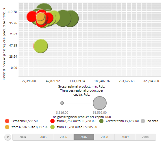 To execute this example, the HTML page must contain the BubbleChart component named bubbleChart (see Example of Creating the BubbleChart Component). Show history for the first bubble and check if bubble history is available in the point (60, 170):