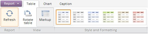 // Get an object of the express report tool ribbon var ribbon = expressBox.getRibbonView(); // Show the Chart tab ribbon.getChartCategory().show(); // Show the Table tab ribbon.getTableCategory().show(); // Show the Title tab ribbon.getTitleCategory().show(); // Hide the Home tab ribbon.getMainCategory().hide(); // Hide the Data tab ribbon.getDataRibbonCategory().hide(); // Hide the View tab ribbon.getViewRibbonCategory().hide();