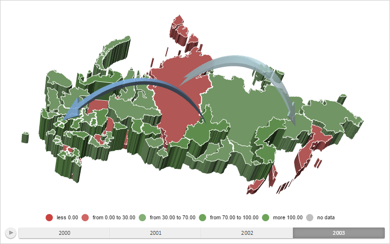 To execute the example the HTML page must contain the MapChart component named map and the ToolBar component named MapType (see Example of Creating the MapChart Component). A map with the WebGL topobase must be loaded. To do this, execute the following script line in the browser console: