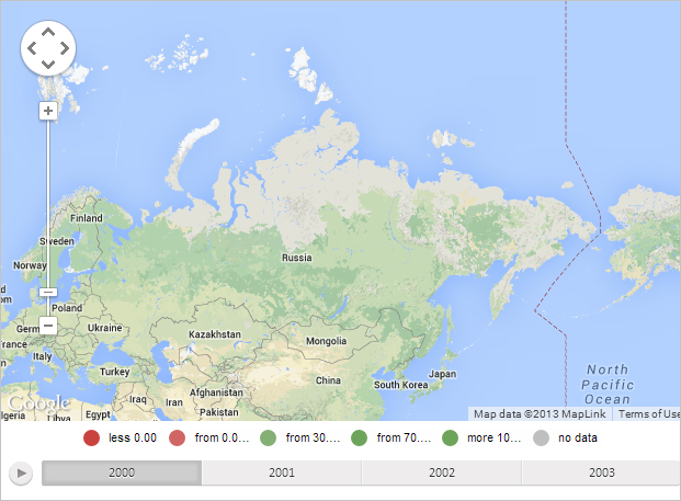 To execute the example the HTML page must contain the MapChart component named map (see Example of Creating the MapChart Component). A map with the Google topobase must also be loaded (see page with description of the MapChart.afterGoogleLoad property).