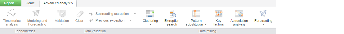 The AdvAnalyticsCatView class implements view of the Advanced Analytics tool ribbon tab.