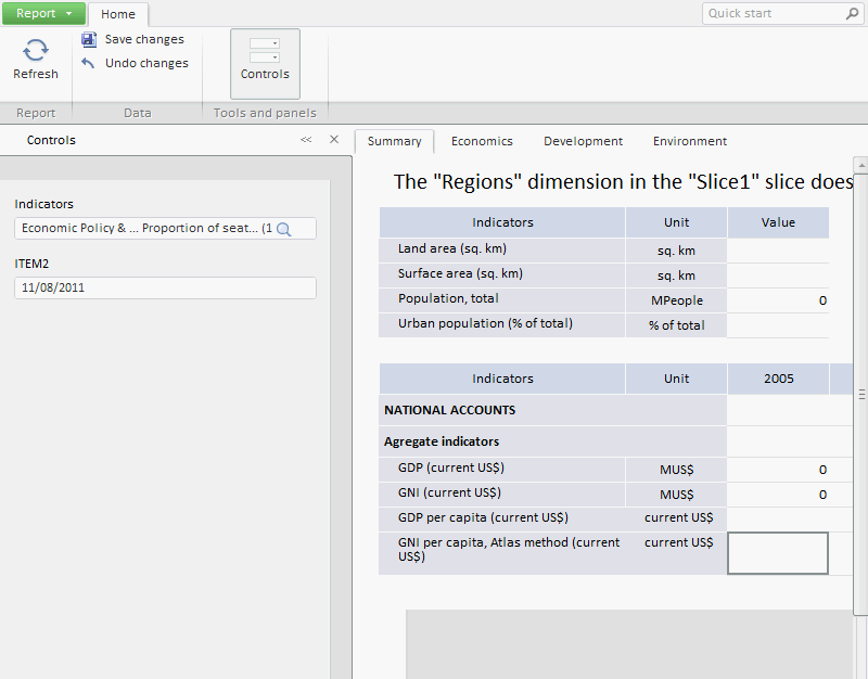 | refresh | The refresh method refreshes the ribbon and regular report data area. | |