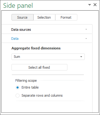 When working with calendar dimension elements selection, it is available to select selection mode: elements or levels. Selection mode depends on the mode, which is set in the report used as a data source.
