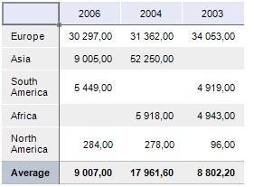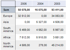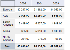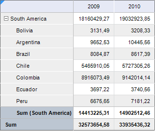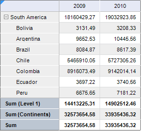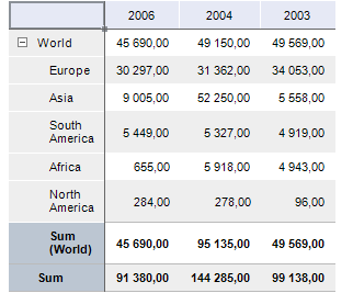 Displaying of totals can be set up for table rows and columns. For example, the sum of column values cab be displayed in columns.