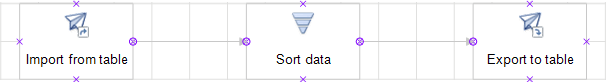 The repository must contain two tables T_Source, T_Destination, tables must be identical in structure and must contains the Value field. Sorting will be executed by the field values. The repository must also contain an ETL task with the ETLTASKS identifier. On executing the example presented below three objects are created in the ETL task: repository source, the Sorting transformer, and repository consumer. The required properties and links are set for all objects: