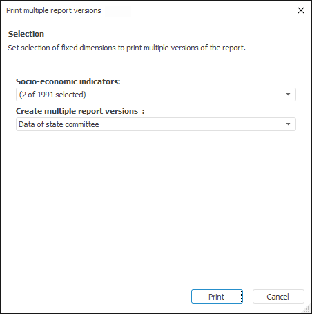 Batch operations are operations executed for multiple report versions. Report versions are based on the selection of fixed dimensions' elements that is set using the controls shared by all report sheets.