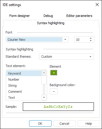 The Format Code Automatically checkbox enables or disables automatic formatting of edited line's text. Selecting the checkbox automatically deletes unnecessary spaces or adds the missing ones, that is, creates formatted lines to make the program text easy to read