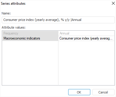 NOTE. If the data source already contains time series with specified attributes values, series observations values are displayed in the data table.