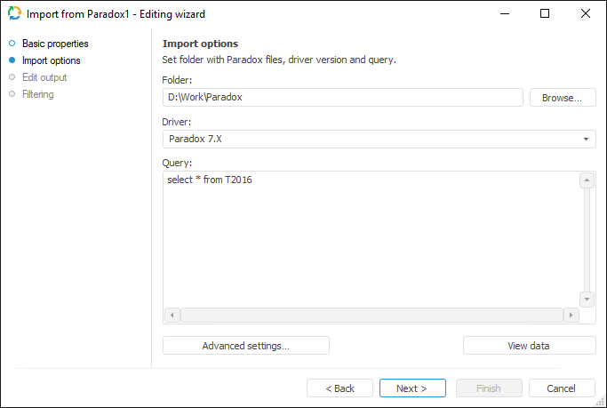 Specify a directory containing Paradox files and a driver for the current Paradox version.