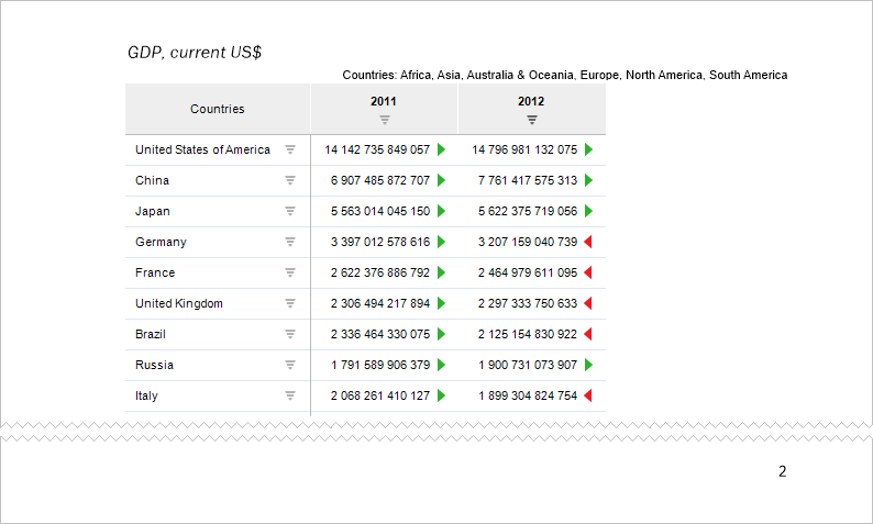 After executing these operations, the data area header is displayed in the left part of header or footer, the dimension selection is displayed in the right part on even pages.