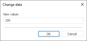 On clicking the OK button the method returns True, and the entered value is put into the variable defined in the Data parameter.